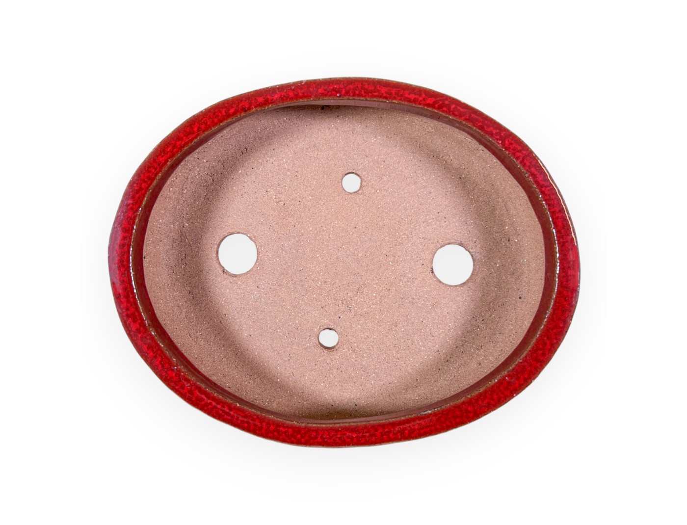 Pot à bonsaï chinois, fait à la main, ovale, en grès émaillé rouge.