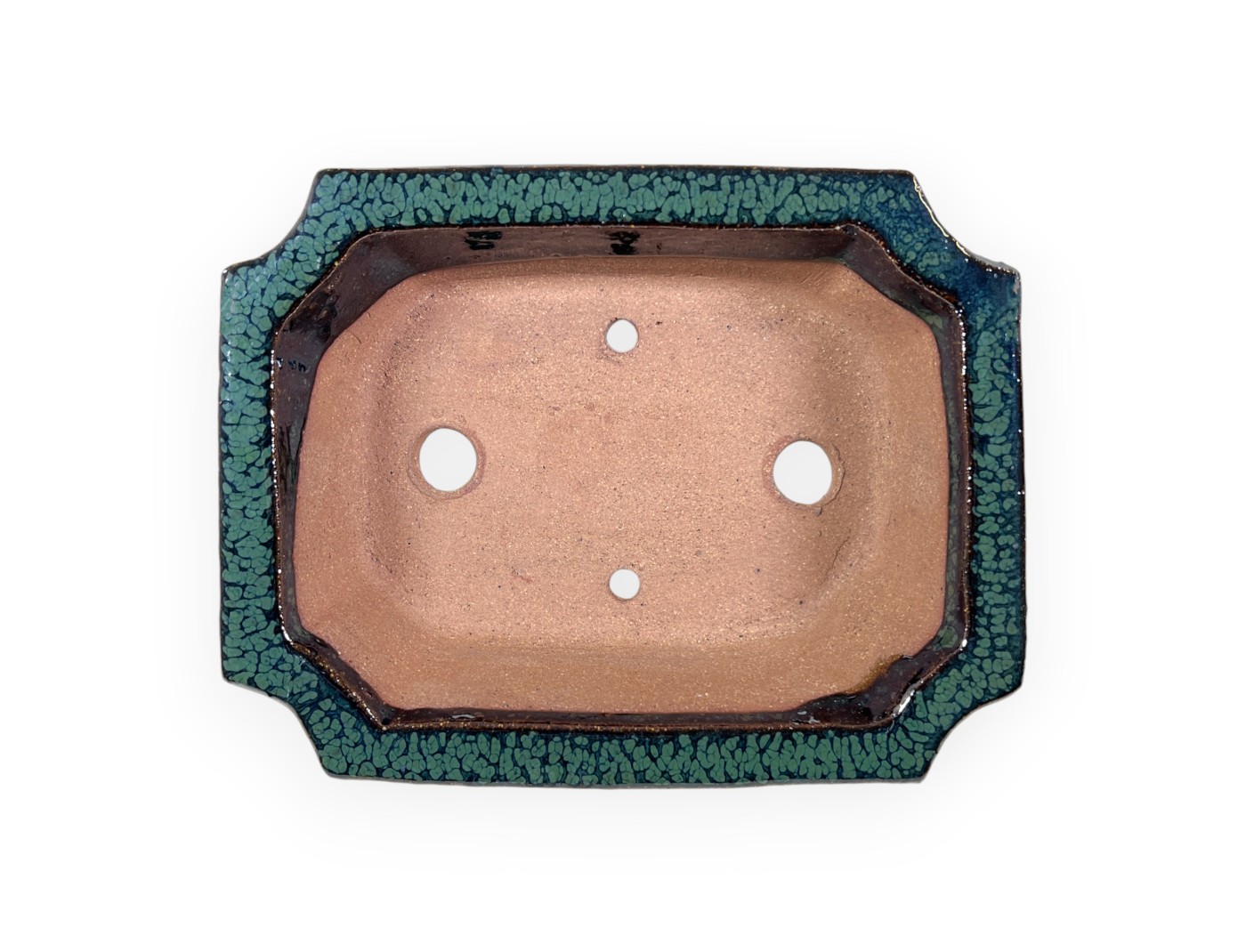 Pot à bonsaï chinois, fait à la main, rectangulaire, en grès émaillé vert.