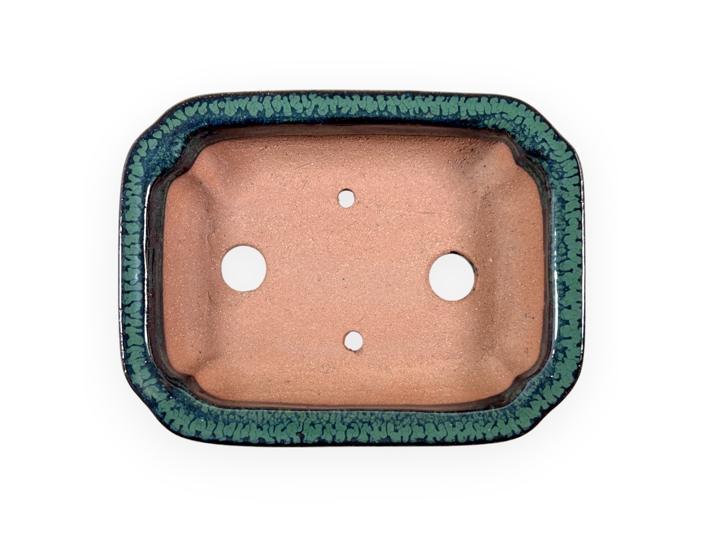 Pot à bonsaï chinois, fait à la main, rectangulaire, en grès émaillé vert.