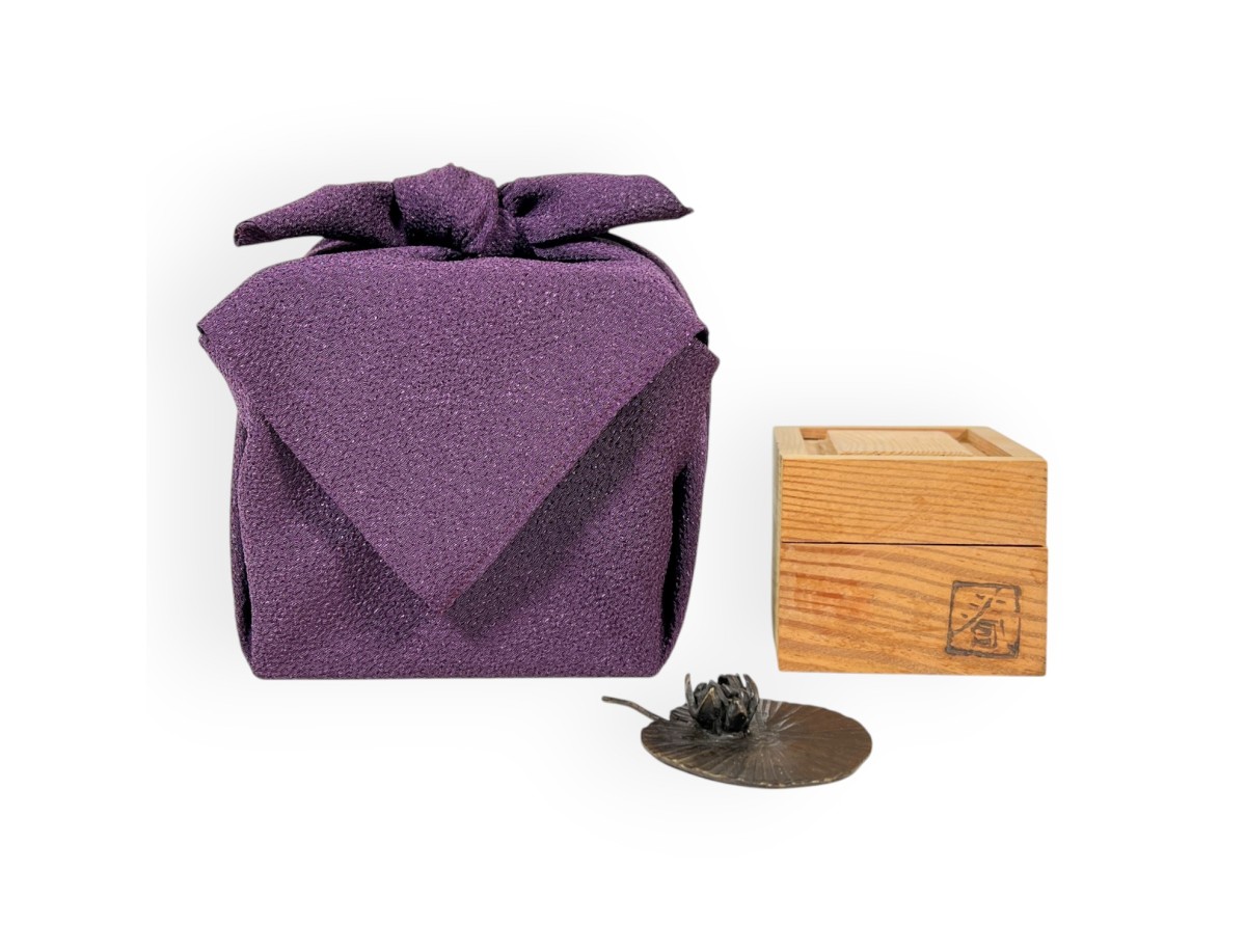 L'ensemble se compose d'un tenpai Ninfea et d'un Chirimen Furoshiki violet unicolore.