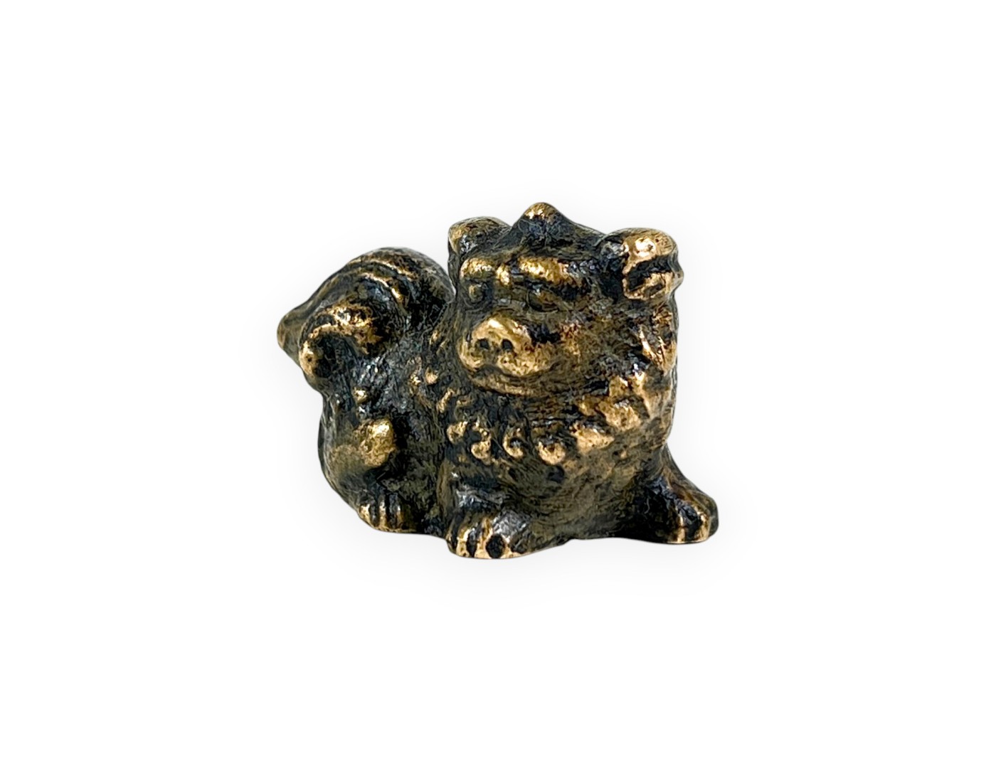 Tenpai lion en laiton, dont les dimensions sont de 4x2xh2,5 cm. Idéal comme complément décoratif élégant et à forte valeur symbolique, pour accompagner et mettre en valeur les bonsaïs.