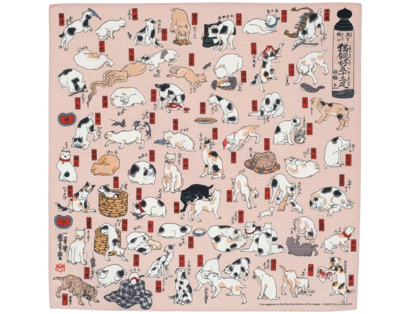 Furoshiki 104 cm - Gatti Come Le Cinquantatre Stazioni Del Tokaido