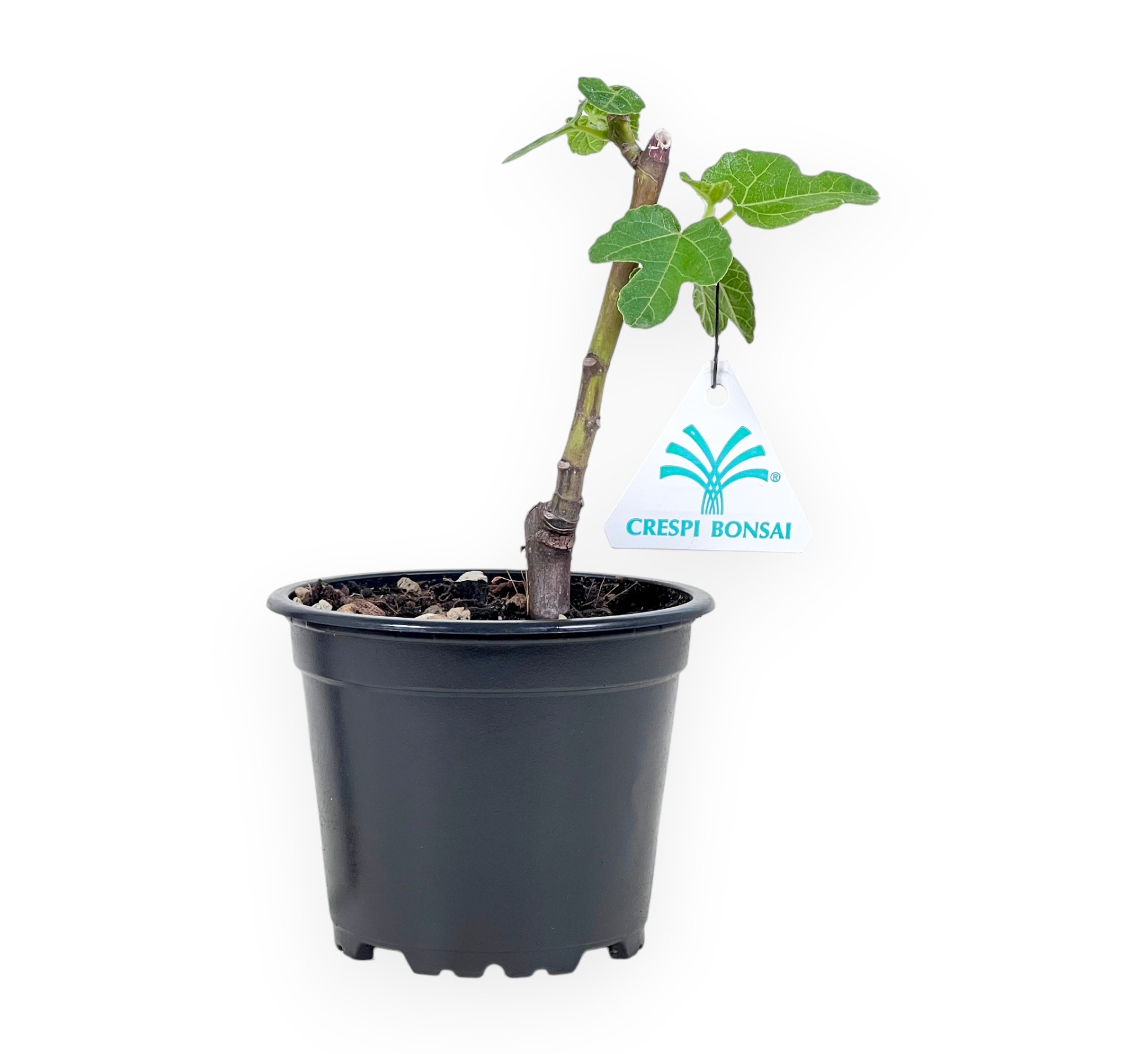 Pianta da lavorare di Fico caratterizzata da altezza senza vaso di 12 cm, e dimensione del tronco di 1 cm. La pianta è coltivata in un vaso tondo in plastica le cui dimensioni sono Ø10xH8 cm.