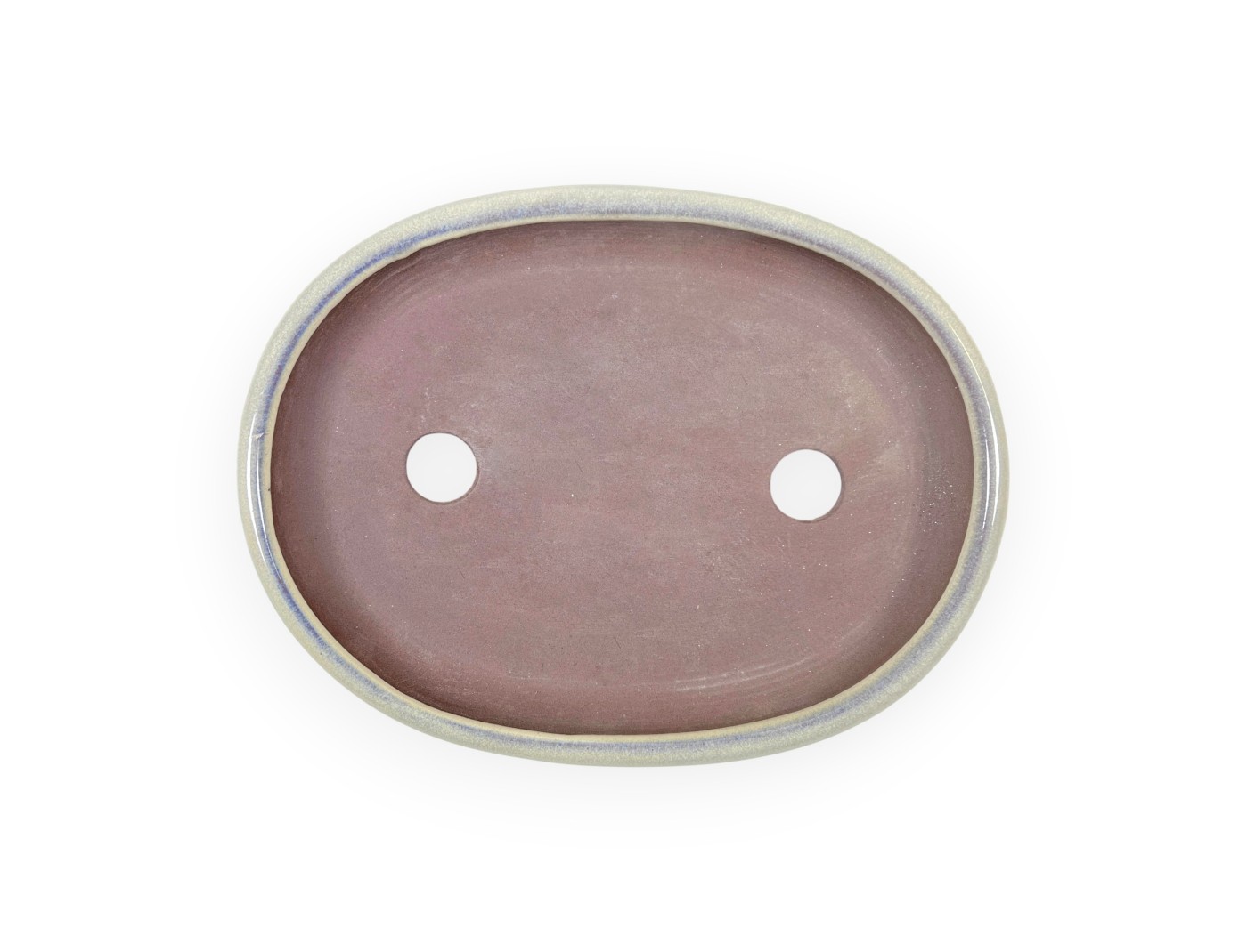 Vaso per bonsai giapponese, ovale, in grès smaltato colore crema.