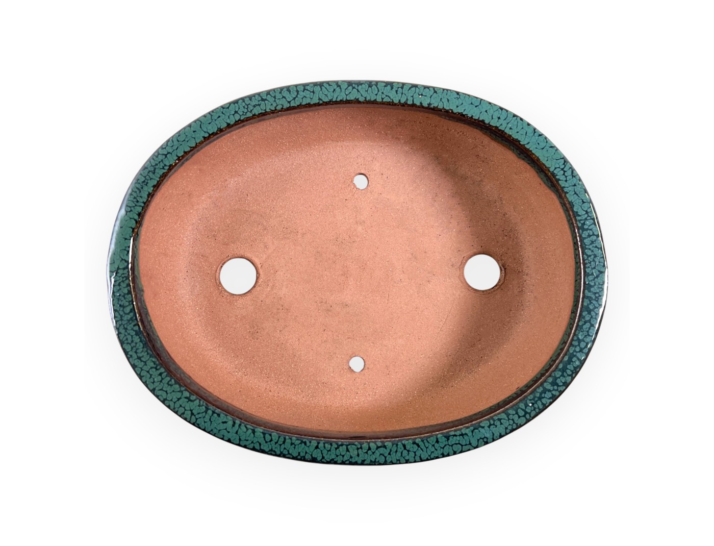 Vaso per bonsai cinese, fatto a mano, ovale, in grès smaltato colore verde.