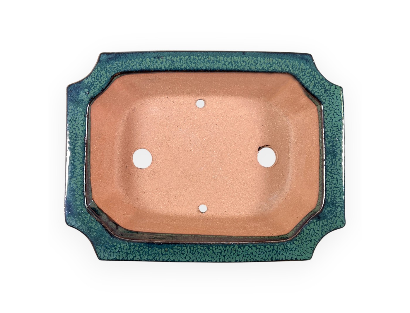 Vaso per bonsai cinese, fatto a mano, rettangolare, in grès smaltato colore verde.