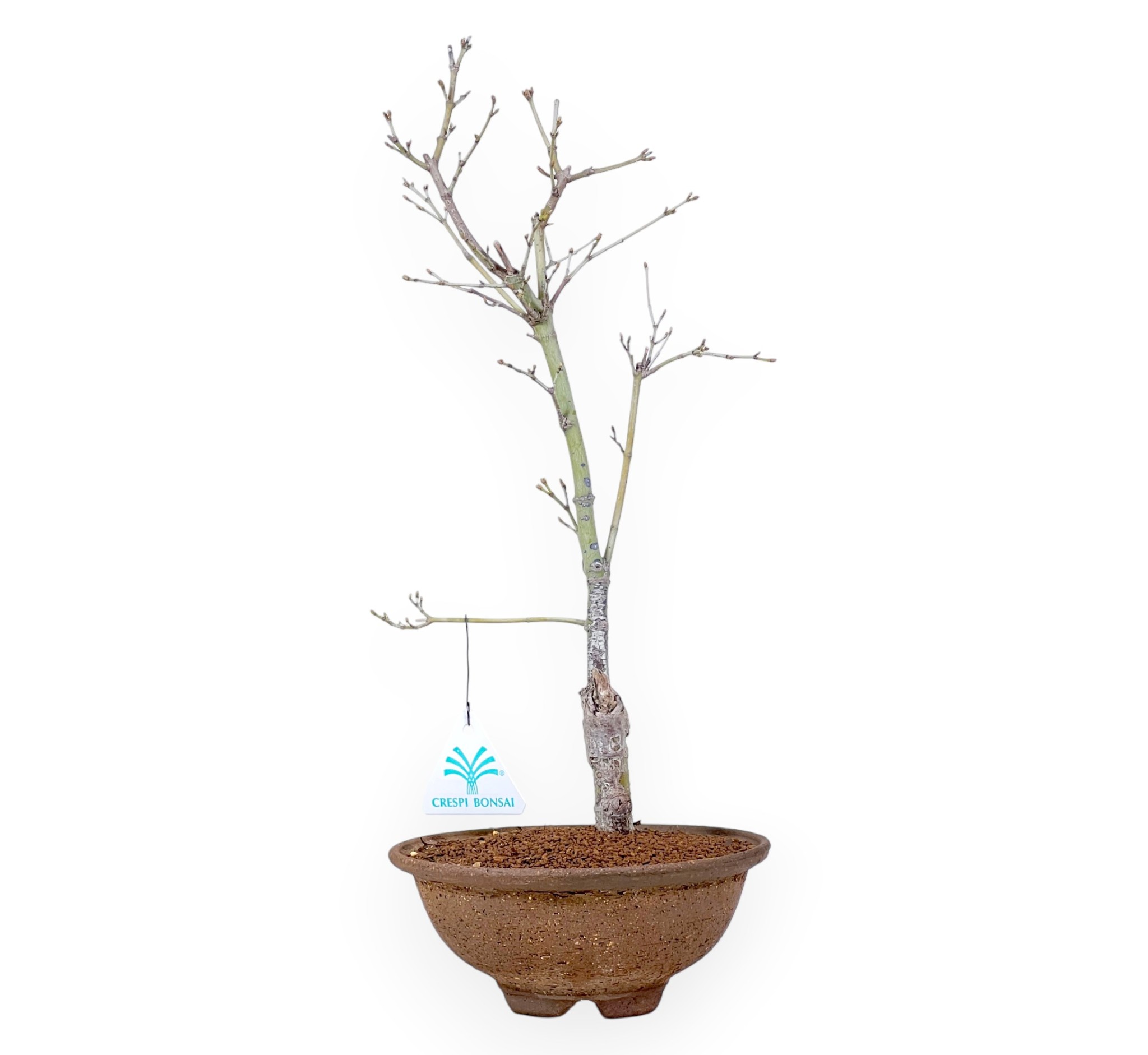 Deze bonsai van Acer palmatum Aoyagi is een bladverliezende soort die zich in de lente presenteert met intense lichtgroene tinten en tijdens het seizoen evolueert naar geel in de herfst, donkerder groen in de zomer en dan zijn bladeren verliest in de winter. Een uitstekende plant om je eigen bonsai van te maken. Hij wordt gekweekt in een ronde ongeglazuurde aardewerken pot die een verfijnd kleurcontrast creëert met de bladtinten en de bonsai een gevoel van natuurlijkheid geeft.