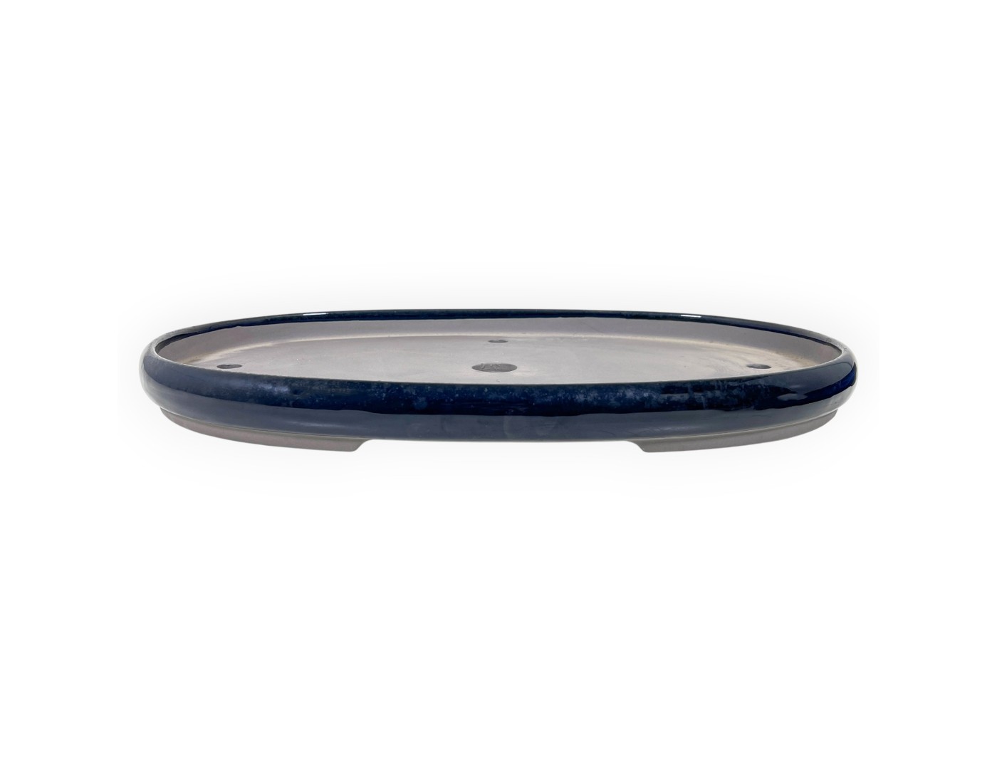 Japanse bonsai pot, ovaal, gemaakt van blauw geglazuurd steengoed.