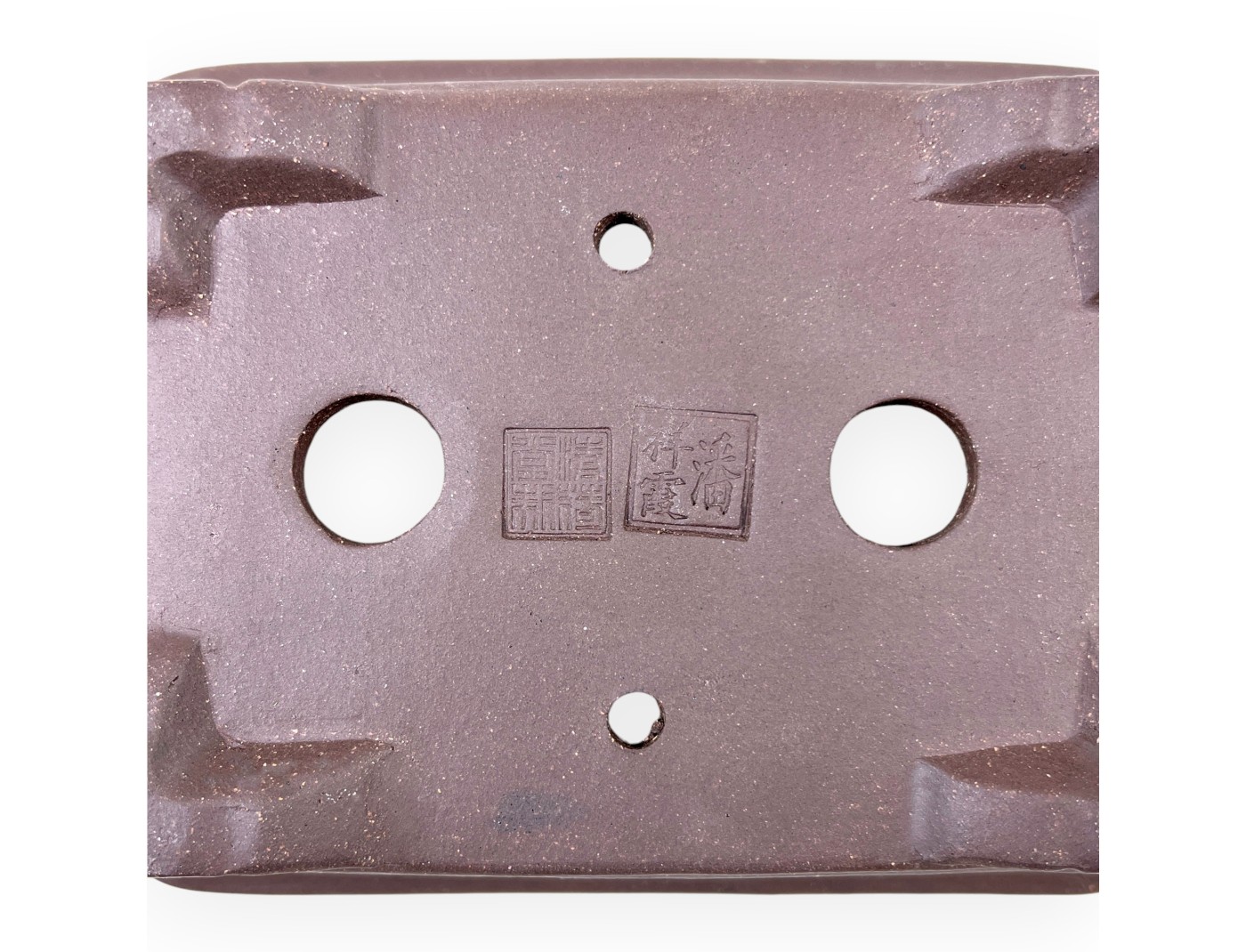De ongeglazuurde afwerking met zijn ruwe, natuurlijke oppervlak geeft een rustiek uiterlijk dat de kenmerken van de bonsai versterkt en een fascinerend contrast vormt met het diepe groen van de bladeren. De rechthoekig vorm, de licht decoratief terugliggende wanden, de uitgesproken bovenrand en de duidelijk gedefinieerde voetjes zorgen voor stabiliteit en proportie, voegen een vleugje verfijning en traditie toe door te herinneren aan de klassieke stijl van Chinese potten. De vier drainagegaten zorgen voor een goede waterafvoer, wat essentieel is voor de gezondheid van het wortelsysteem. Een pot die robuustheid en continuïteit in de tijd benadrukt, ideaal voor groenblijvende en naaldboom bonsai.