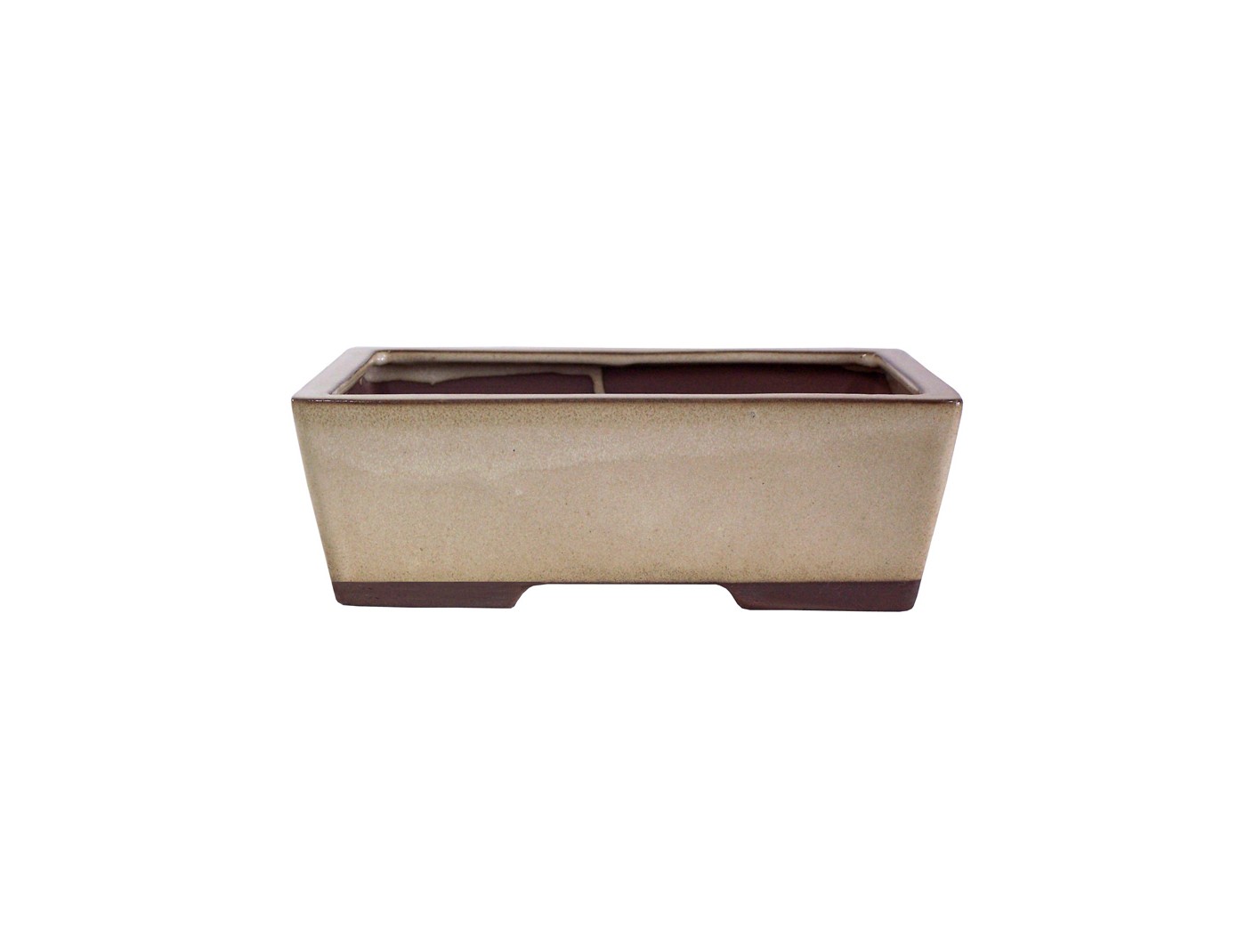 Chinese bonsai pot, handgemaakt, rechthoekig, gemaakt van crème geglazuurd steengoed.