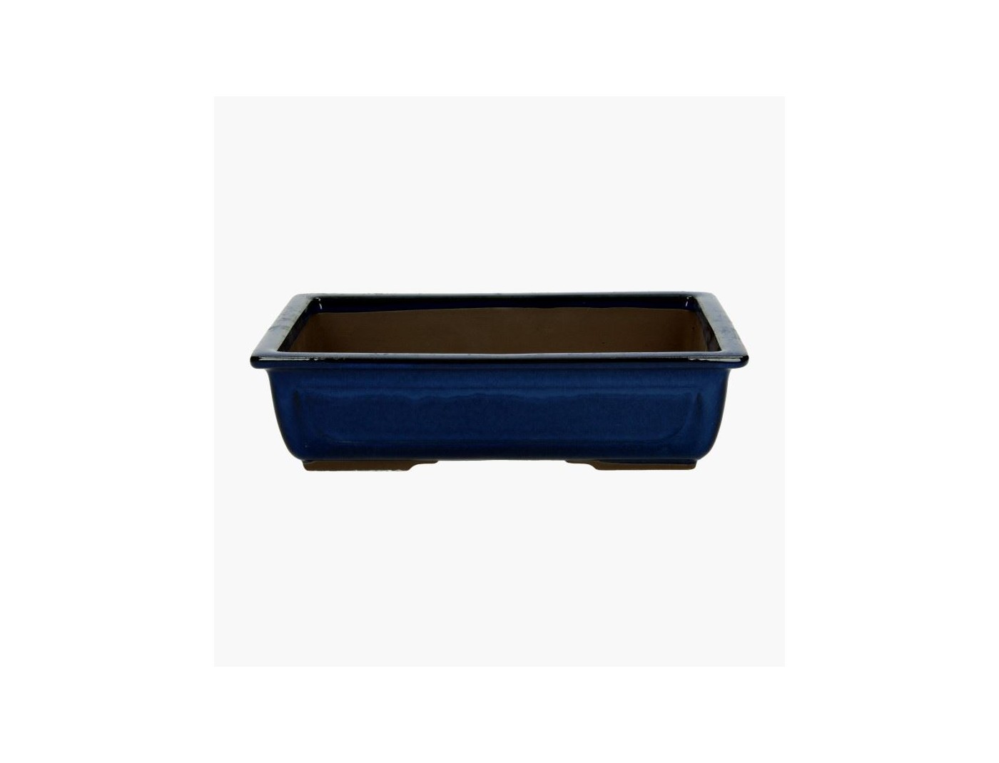 Japanse bonsai pot, rechthoekig, gemaakt van blauw geglazuurd steengoed.
