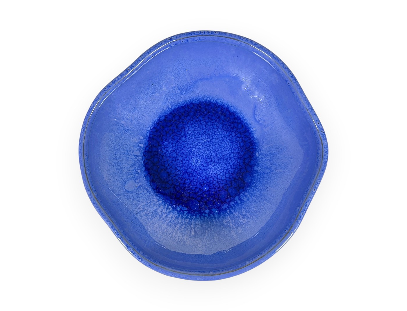 Chinese ikebana pot, onregelmatige vorm, gemaakt van blauw geglazuurd steengoed.