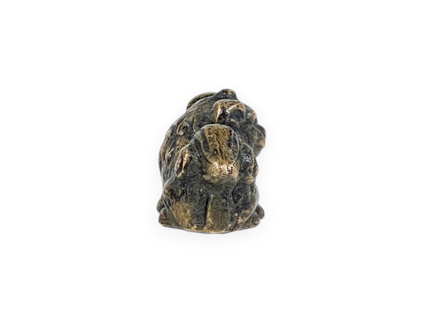De tenpai van messing en heeft een gedetailleerde afwerking die het figuur een driedimensionaal effect geeft. Het stelt een kleine leeuw voor in een ineengedoken houding, met een compact lichaam en een staart die langs zijn flank is gewikkeld. De goed gedefinieerde snuit met markante trekken en intense uitdrukking roept kracht, bescherming en noblesse op, symbolen van de traditionele oosterse esthetiek. Hij leent zich bijzonder goed om kleine en middelgrote bonsai te begeleiden en voegt een symbolisch en verfijnd detail toe aan de compositie. Hij is ideaal om een suiseki presentatie of een bonsai compositie te verrijken met stijl en persoonlijkheid.
